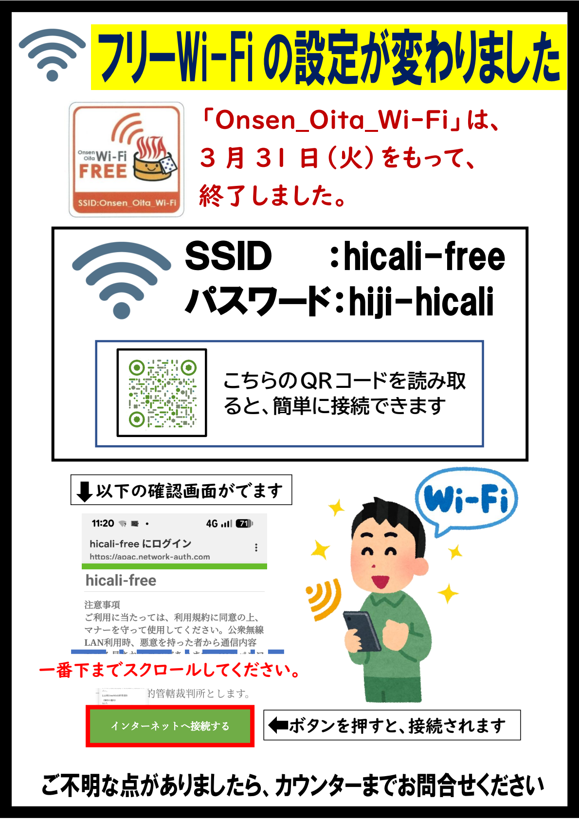 利用案内(フリーWi-Fiはこのページの下部にあります。)
