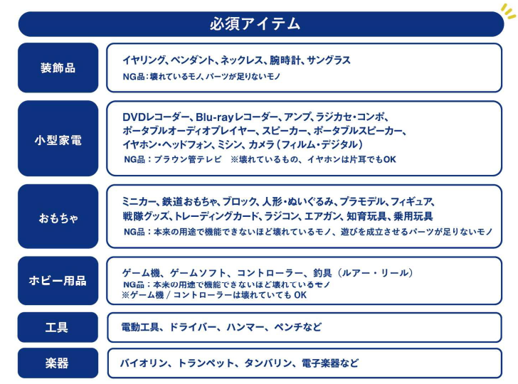 必須アイテム(1箱に1点以上必要です)