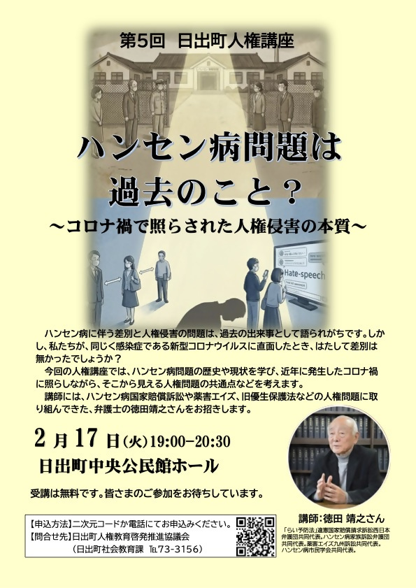 第5回日出町人権講座「ハンセン病問題は過去のこと?~コロナ禍で照らされた人権侵害の本質~」の開催について