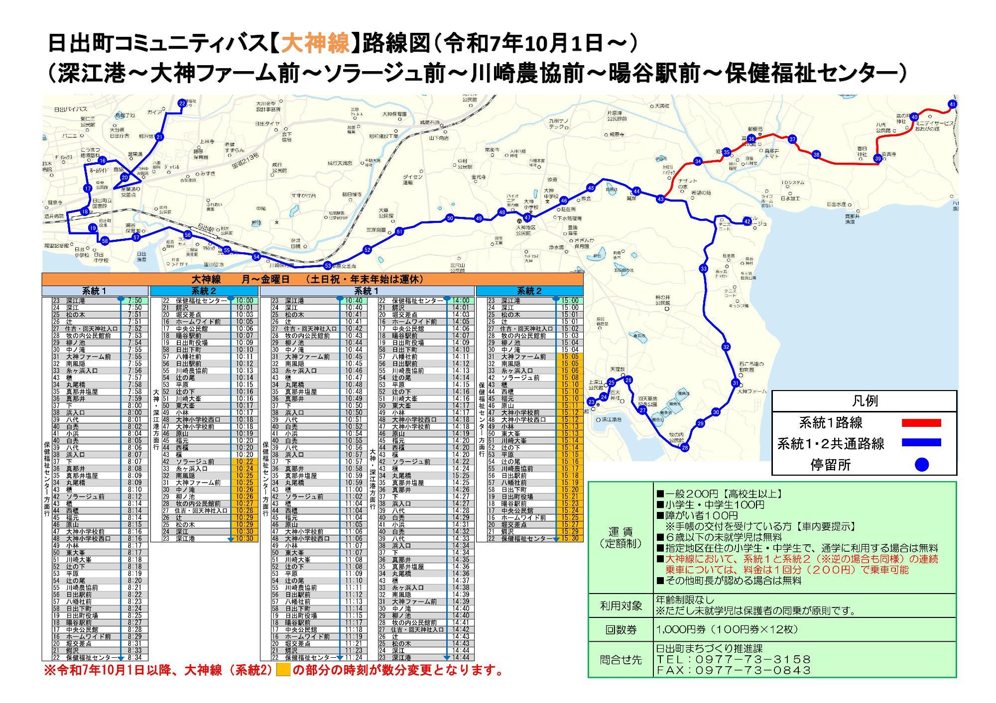 令和7年10月1日以降、(大神線)系統2の一部時刻が変更となります。